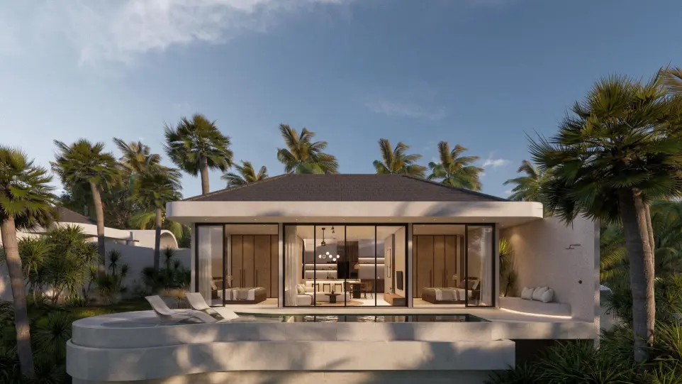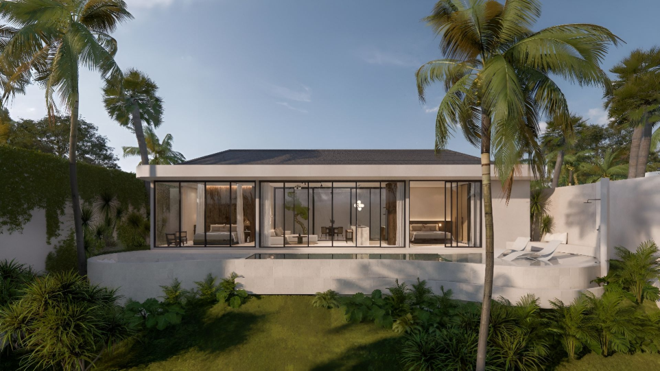 Chaque villa comprend deux chambres avec salle de bain privative, chacune dotée de grandes fenêtres ouvrant sur des jardins luxuriants, offrant une expérience sereine et proche de la nature.